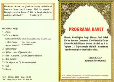Daha önce, hafta başında verdiğimiz haber ve köşe yazısında sözünü ettiğimiz mezkûr programda konuşan Giresun İl Müftüsü Necâti AKKUŞ Hoca ve Perşembe İlçemizden oraya atanan, Bulancak Müftüsü Korganlı hemşehrimiz Şâban SADAN Bey bizleri bu törenlere harâretle dâvet etmişlerdi. Biz de, müsâit olanların katılımını tavsiye ediyoruz.