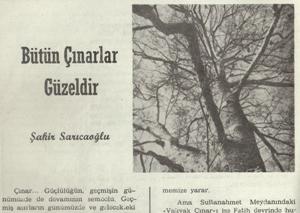 Dergide daha ne güzellikler var ama, hepsini buraya almak mümkün değil. Nitekim, bir başka güzel, derinlikli yazının başlığı da şöyle: BÜTÜN ÇINARLAR GÜZELDİR!