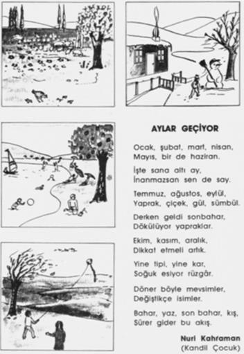 “9.9.1989 günü, hayâtımın sürprizli günlerinden biri oldu. İlkokul 2’de okuyacak olan Beyzâ yeğenimin kitap-kırtâsiye ihtiyaçları alınmıştı. Kitapları karıştırırken, bir de ne göreyim; yeni müfredâta göre yazılan GÜZEL TÜRKÇE Kitabı’nın 78. sahifesinde benim de bir şiirim var. Adı, AYLAR GEÇİYOR. Şiirle ilgili resimler, kareler ve sorular da var. Şiir, konu olarak işleniyor yâni. Sevindim doğrusu. Yarın, Allâh (CC) izin verirse, kitapçıları dolaşıp, diğer kitaplara da bakacağım inşâllâh.
