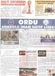 Zamanlama îtibârıyle çakışmalar olsa da, tüm bunların hepsini tâkip etmeye çalıştık. Ocak ayı ve belki de bu yılın olayı diyebileceğimiz oranda bizi mutlu eden şey ise, bir akşam önce bir başka program dolayısıyla bulunduğumuz TESK OTEL’de, Ordu İmam-Hatip Lisesi’nin düzenleyip, Hâlit ERTUĞRUL’un sunduğu Âile ve Gençlik Eğitimi konulu konferansa gittiğimizde, dâvetlilere dağıtılan ORDU ANADOLU İMAM HATİP LİSESİ adlı bülten oldu.